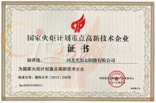 國(guó)家火炬計(jì)劃重點(diǎn)高新技術(shù)企業(yè)證書