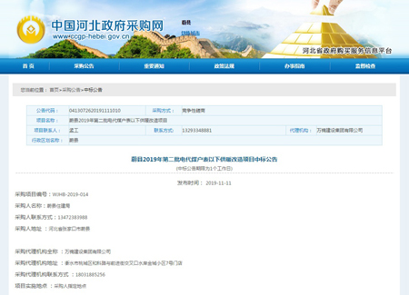 河北光源太陽(yáng)能科技有限公司,在2019年11月11日,蔚縣2019年第二批電代煤戶表以下供暖改造項(xiàng)目中標(biāo)公告,為我公司2019年度輝煌的經(jīng)營(yíng)業(yè)績(jī)?cè)偬頋饽夭实囊还P,“光源進(jìn)萬(wàn)家 溫暖你我他”!圍繞著一個(gè)目標(biāo),朝著一個(gè)方向,光源人不斷邁進(jìn)!