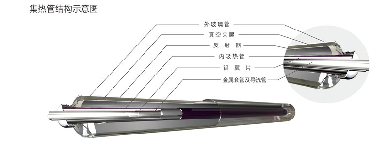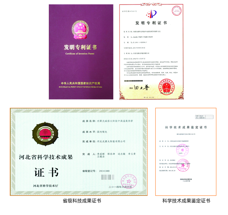 技術(shù)特點(diǎn):一是內(nèi)置CPC反射器。外罩玻璃管與吸熱管采用同軸套管,在真空管內(nèi)壁下半周設(shè)置金屬拋物面反射器,運(yùn)用拋物面原理實(shí)現(xiàn)了全角度采光,反射器不受大氣污染,聚光效果更好。二是耐高溫鍍膜技術(shù)。內(nèi)吸熱管表面濺射耐高溫太陽(yáng)吸收膜層,內(nèi)外管之間抽真空,工作溫度400℃以上膜層不脫落、不老化。三是強(qiáng)制傳質(zhì)傳熱技術(shù)。在吸熱管內(nèi)插裝金屬套管,套管內(nèi)置入金屬導(dǎo)熱管,使管內(nèi)的介質(zhì)容量減少了70%,大大提高了傳質(zhì)傳熱效率。四是安全承壓技術(shù)。金屬套管與聯(lián)集箱采用絲扣連接,保證系統(tǒng)工作安全可靠。經(jīng)權(quán)威機(jī)構(gòu)檢驗(yàn),太陽(yáng)能吸收比、熱損系數(shù)、真空品質(zhì)等技術(shù)指標(biāo)均優(yōu)于國(guó)家標(biāo)準(zhǔn)。采用該產(chǎn)品組成的太陽(yáng)能中高溫?zé)崂孟到y(tǒng),穩(wěn)定工作溫度可達(dá)到163℃蒸汽,真正實(shí)現(xiàn)了太陽(yáng)能由“熱水應(yīng)用”到“熱能應(yīng)用”的跨越式提升,填補(bǔ)了國(guó)內(nèi)太陽(yáng)能中高溫真空集熱管在160℃溫區(qū)的技術(shù)空白??萍汲晒b定認(rèn)為:該產(chǎn)品的綜合性能達(dá)到了“國(guó)內(nèi)領(lǐng)先水平”,系統(tǒng)可廣泛用于太陽(yáng)能飲用開(kāi)水、采暖制冷、食品加工、紡織印染、農(nóng)副產(chǎn)品烘干等多種行業(yè)。對(duì)促進(jìn)大氣污染治理,推動(dòng)我國(guó)能源結(jié)構(gòu)調(diào)整具有重要意義。